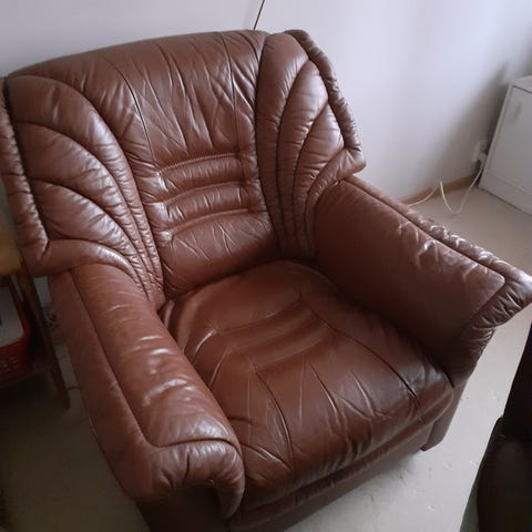 Hyväkuntoinen käytetty ruskea nahkainen nojatuoli