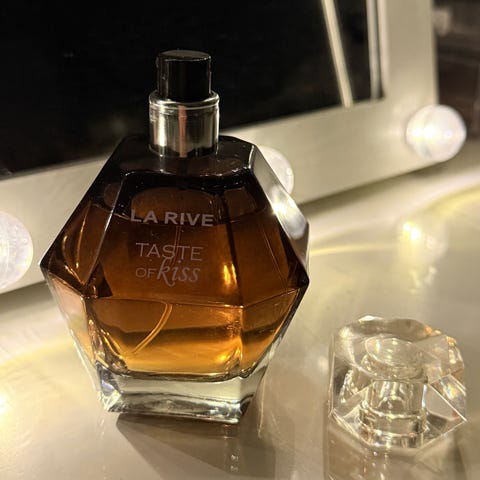 La Rive Taste of Kiss Eau de Parfum 100 ml pullo. Käytetty määrä näkyy kuvassa.