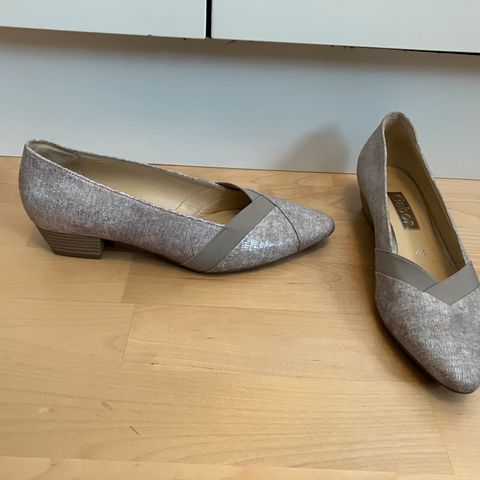 Uudet käyttämättömät metallinhohtoiset Gaborin juhlakengät. Malli ei ollut omaan jalkaan sopiva, vaikka koko vastaakin täysin Gaborin kokoja. Väri on kaunis hopean ja kullan sekoitus. Koko 7.5 eli 41.