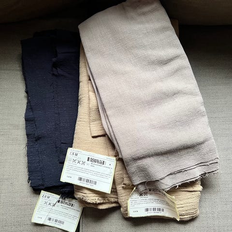 Myydään uusia kankaita. Ollut jemmassa, mutta tykkään nykyään värikkäämmistä kankaista omissa ompeluissa.