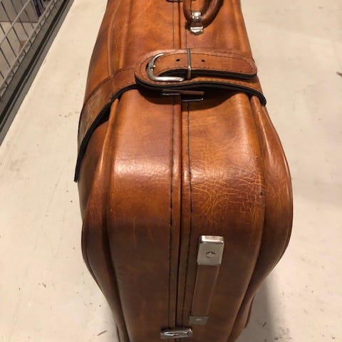 Myydään tarpeettomana retro henkinen ruskea matkalaukku. Materiaali nahkaa.