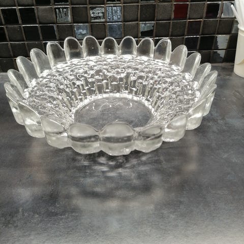 Erittäin hyvä kuntoinen Pertti Santalahden suunnittelema Kruunu tarjoilukulho, kirkas lasi.