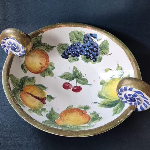 Kultakeramiikka, hedelmälautanen, salaattikulho, tarjoiluvati.
