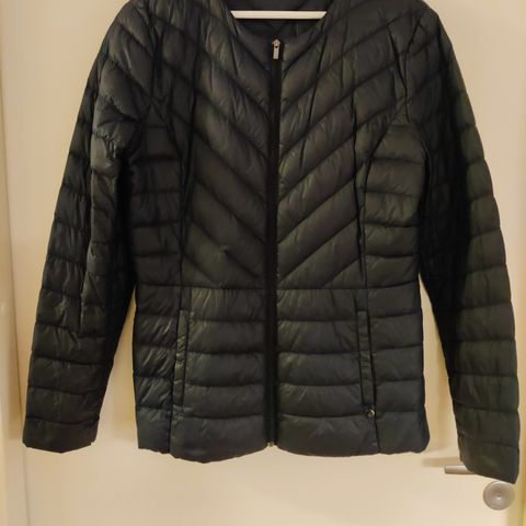 Benettonin todella kevyt, ehjä ja siisti untuvatakki. Väri vaaleanvihreä, sisäpuoli harmaa. Vetoketjutaskut, irrotettava huppu (vetoketjulla). Takki pakkautuu omaan pussiinsa (pussin pituus noin 26 cm). Kai-kai noin 53 cm, olka-helma noin 57 cm. Nouto mahdollinen Turusta.