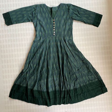 Kaunis, lähes käyttämätön mekko, kai-kai 38 cm, olka-helma 120 cm. Värikäs ikat-kaitale asettuu hartioille tai voi asetella off shoulder -tyyliin. Puuvillaa.