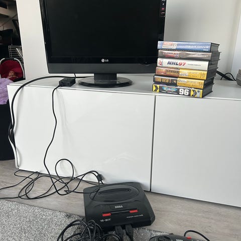 Toimiva ja siisti 16-BIT SEGA Mega Drive II konsoli tarvittavilla piuhoilla, 2 kpl alkuperäistä peliohjainta, 5 kpl pelejä joiden toimivuus testattu 15.10.2025. Ostettu uusi AV-kaapeli 13.10.2025, että voidaan tämä konsoli yhdistää nykyaikaiseen telkkariin. Mukana myös tulee vanha kuvaputkitelkkariin yhdistämisen johto. Ensisijainen tavoite myydä kokonaispakettina, mutta voin myös pohtia esimerkiksi yksittäisten pelien myyntiä.