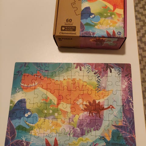 Clementoni The Good Dinosaur SuperColor palapeli, suunniteltu yli 6-vuotiaille lapsille. Palapelin teema perustuu Disneyn elokuvaan The Good Dinosaur. Sisältää värikkäitä dinosaurushahmoja. Materiaali: kartonki.