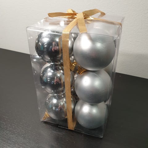 Kultaiset jouluomena ja pehmopallukat joulukuuseen