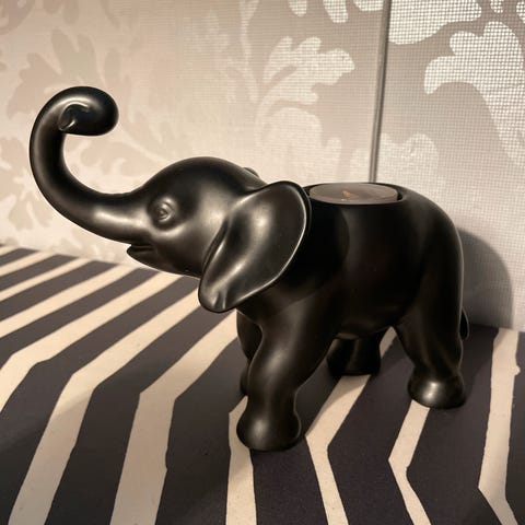 Mukaan kaupanpäälle tuo pienempi random off brand lämpökynttilö tuikkukuppi joka on myös norsu.