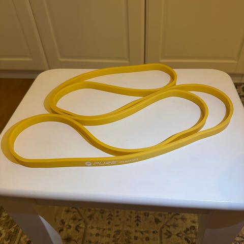 Sininen kuminauha, joustava materiaali, sopii kuntoiluun. Leveys n. 1 cm.