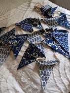 Myyn käyttämättömän Indiskan kankaisen viirinauhan. Nauhan pituus 6 metriä. Kauniit sinisenkirjavat viirit uuteen kotiin lastenhuoneeseen tai juhlien somisteeksi. Hinta 14 euroa. Säynätsalossa.
