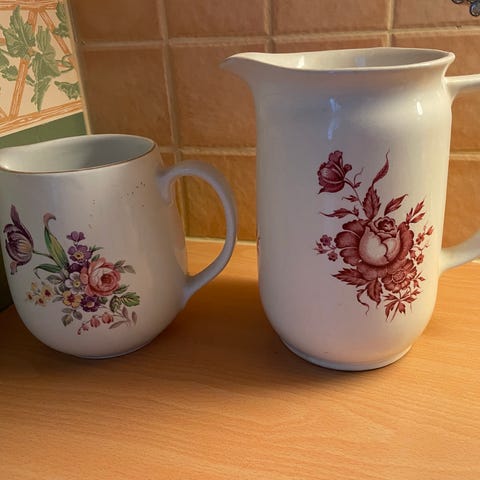 Arabia ja Hackman kannut keraamiset kukkakuvioinnit