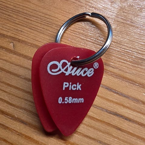 Uusi plektra avaimenperä jossa 2 plektraa. Molemmat plektrat 0,58 mm.
