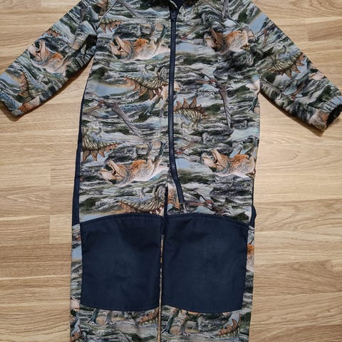 Ihan hyväkuntoinen softshell haalari. Ainoat värimuutokset polvissa ja pyllyssä harmaantumaa. Ehjä kuitenkin.