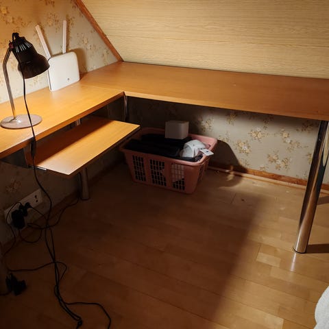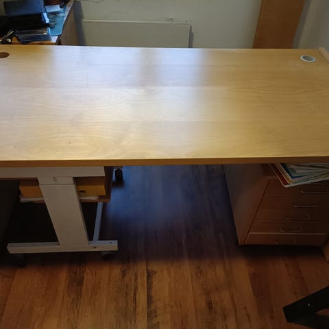 Annetaan kookas kirjoituspöytä. Käytön jälkiä, elämää nähnyt!