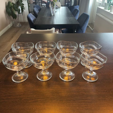 Käyttämättömät jäätelokulhot, 4 kpl. Korkeus n. 18,5 cm.