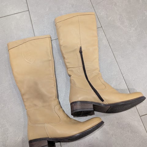 Upeat pitkä saappaat, korko 8cm. Väri tummanruskea. Ei mitään kulumisen merkkejä. Koko 39 (US8.5) vastaa hyvin kokoaan. Oulussa ja postitus onnistuu