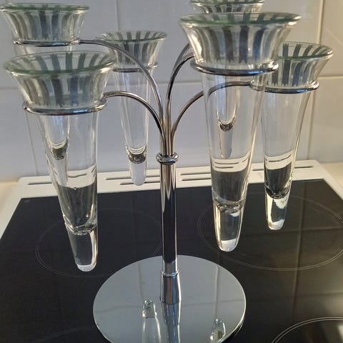 Myydään kaksi Partyliten kynttelikköä, voi käyttää myös maljakkona. Pienempään varaosiksi tuikkuosa.