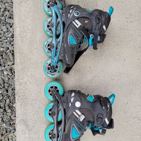 Mukavat jalassa, hyvin kulkee. Suojat kuuluu mukaan.