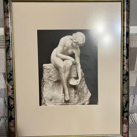 Kuvassa on sinisiä, vihreitä ja oransseja sävyjä. Kuvan koko 18cm x 10cm. Koko taulu raameineen 36cm x 26,5cm.