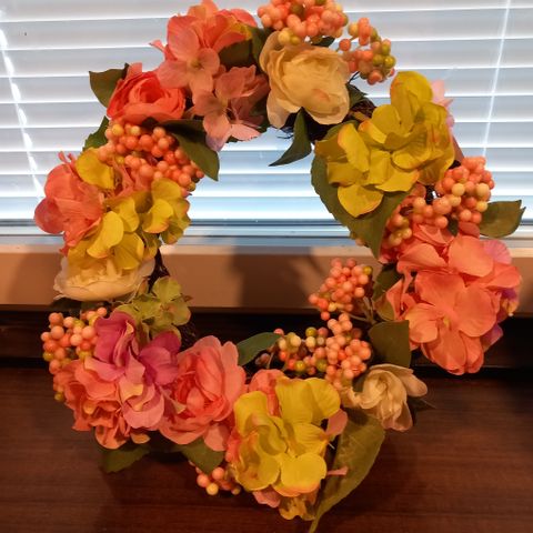 Myydään ylellinen ja erittäin näyttävä, floristin käsinsitoma uniikki kuivakukkakranssi. Erittäin suuri, leveimmältä kohdaltaan noin 55 cm, vaalean bamburenkaan halkaisija 40 cm.
