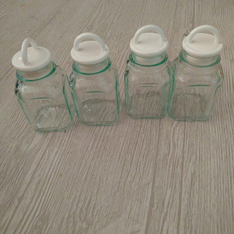10kpl Sarvis maustepurkkeja. Kulumaa on, mutta edelleen käyttäkelpoiset. Yksi purkki on paprikajauheesta kellertynyt.