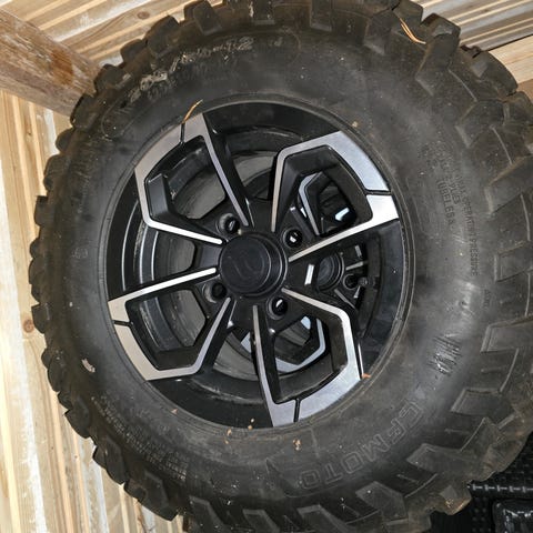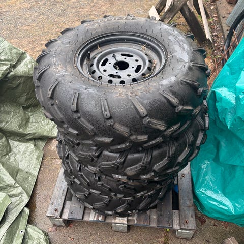 Carlisle ATV-renkaat mustilla teräsvanteilla. Renkaiden koko on takarenkaissa 280/60-12 ja eturenkaissa 205/80-12, ne soveltuvat erityisesti maastoajoneuvojen käyttöön. Vain nouto.