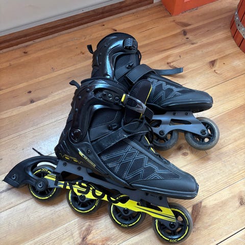 Myydään käytetyt Rollerblade rullaluistimet, koko 44. En löytänyt kokomerkintää, mutta jalkani on kokoa 44 ja itselleni olen joskus ostanut.. Todella vähän käytetyt ja siistit.