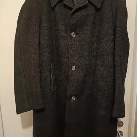 Laadukas ja harvinainen räätälin tekemä 1960-luvun villakangastakki Itä-Saksasta. Tweed-kuvio, turkiskaulus ja erinomaisessa kunnossa - toki pientä käytön jälkeä lähinnä sisävuoressa, takki on kuitenkin jo n. 60v vanha. Koko L/M.