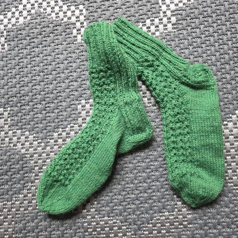 Itse suunnitellut ja kudotut uniikit Vive-sukat. Tikapuutekniikalla kudotut varret. Koko 40. Sijainti Kokkolassa, mutta kulkeutuu Vimpeliin tai Alajärvelle sopimuksen mukaan. Postitus 8,90.