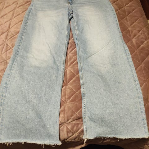 Lagerin vaalean siniset suoralahkeiset farkut. Materiaali ei jousta, mutta löystyy jonkin verran käytössä. Toisaalta myös kestävät kulutusta paremmin kuin elastaania sisältävät farkut. Sepaluksessa nappikiinnitys. Vähällä käytöllä olleet. Kuvissa mittoja. Koko XS. Kunnossa ei moitittavaa.