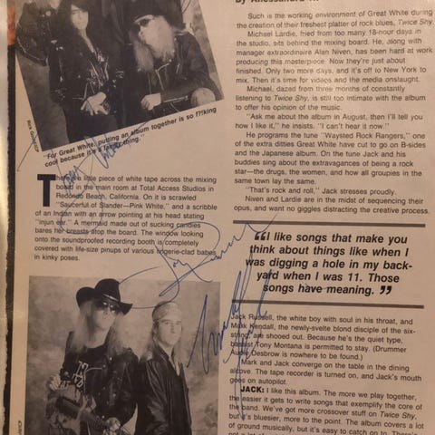 Huey Lewisin THE NEWSin nimikirjoitukset paperilla