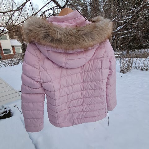 Hieman hohtavan valkoinen TH toppatakki. Jäänyt vähälle käytöllä. Ehjä ja puhdas, vetoketju toimii moitteettomasti. Pudas, ei tahroja.