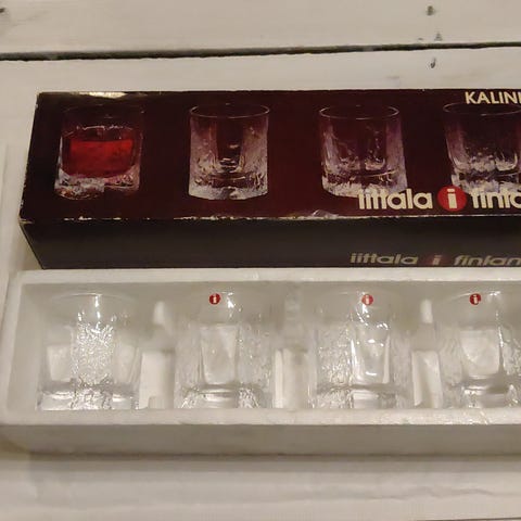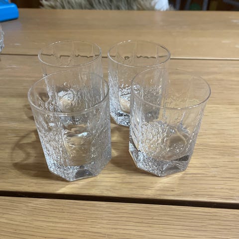 Ja suomalainen hiottu lasi (korkeus 8,5cm, halkaisija 6cm) 8 kpl