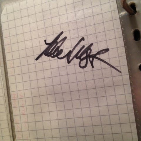 Tamara Bykovan nimikirjoitus pahvikortilla.