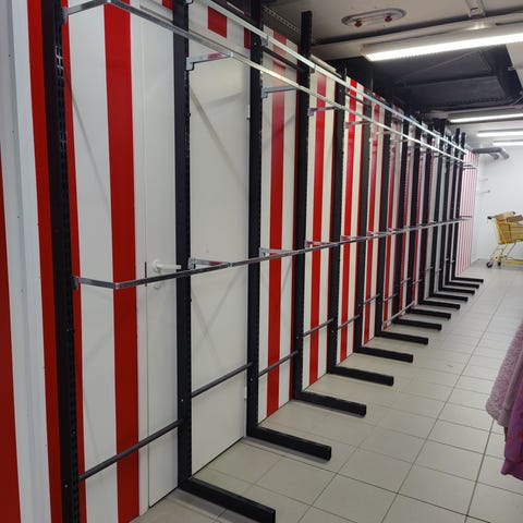 Eri kokoisia peltisiä vaatekaappeja.