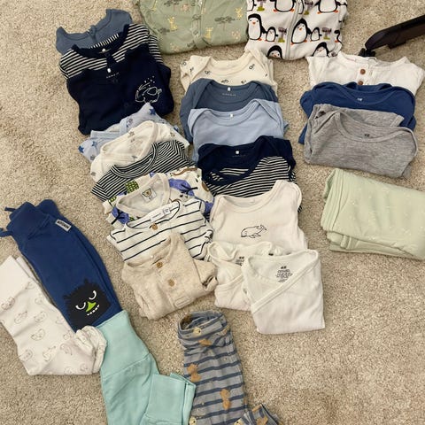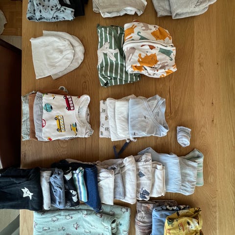 Lindexiä ja yksi Kappahl. Lisäksi yhdet housut kelanpakkauksesta.