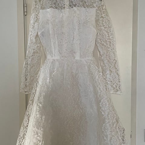 Myydään hyväkuntoinen isoäitini häämekko. Sijoittuu 60-luvun alkupuolelle, kun sitä on käytetty. Koko 42, mutta vastaa mielestäni paljon pienempää kokoa, sanoisin 38/40. Merkki Gala of Sweden. Sisältää myös pitsihansikkaat.