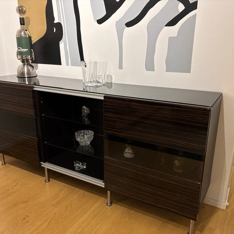 120cm leveiden laatikostojen takalevyssä siisti pyöreät reijät medialaitteiden johdoille.