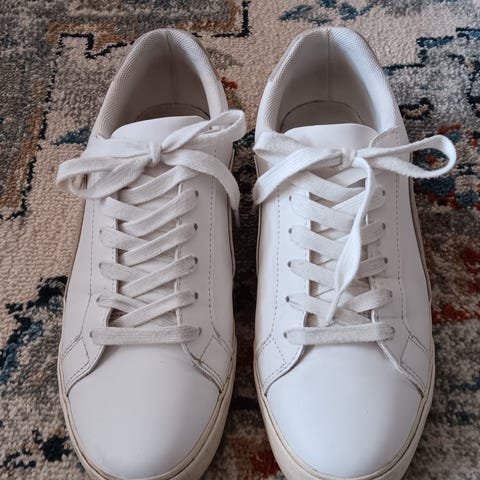Vähän käytetyt, hyväkuntoiset O.I.S. merkkiset valkoiset tennarit aitoa nahkaa kokoa 40. Erittäin hyvät jalkaan.