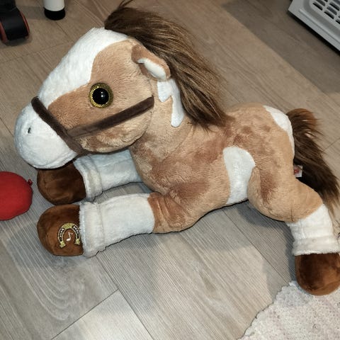 Hööksin pieni pehmoleluhevonen, loimi, trailer -kantokassi, jonka saa vaikka kiinnikkeellä roikkumaan esim. isompaan laukkuun. Nouto.