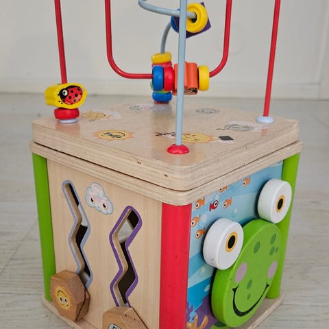 Kaunis puinen aktiviteettilelu taaperolle (tai vauvalle).