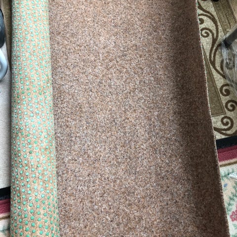 Hyväkuntoinen kokolattiamatto. Pituus 400cm. Leveys arviolta 400-500cm. Matto rullalla niin en pysty mittaamaan.