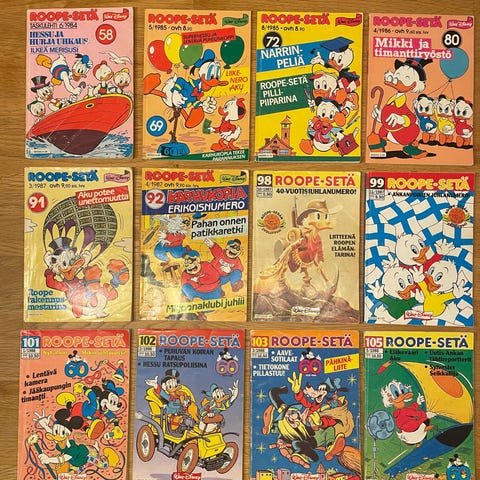 Roope Setä taskukirjoja väliltä 269-299 yhteensä 18 kpl. Tarkemmat numerot näkyy kuvasta.