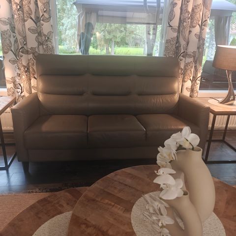 Myydään siistikuntoiset vihreät nahkasohvat, 2+3 istuttavat.