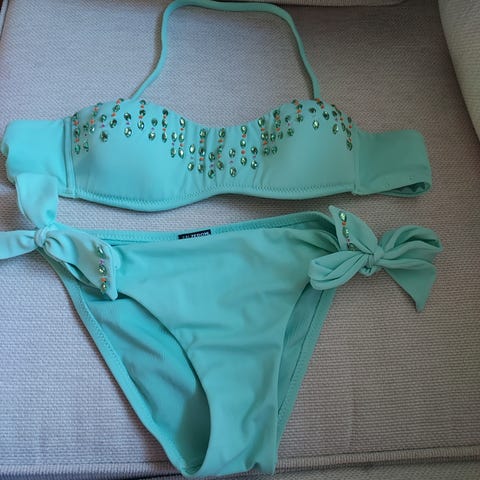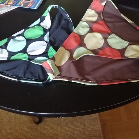 Myydään hyvässä kunnossa oleva bikinien yläosat. Joskus käytetty pari kertaa, kun vielä mahtuivat. Nyt ovat jääneet kaappiin pölyyntymään. Ovat topatut ja koko 70B.