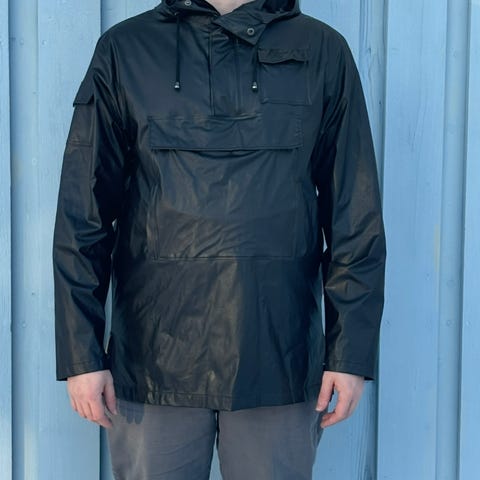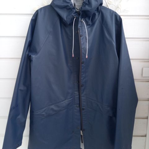Adidaksen miesten punainen takki / sadetakki. Sisäpuolella verkkokangas. Mitat: olka-helma 80 cm, kai-kai 63 cm, kainalo-hihansuu 58 cm. Helmassa kiristysnauha.