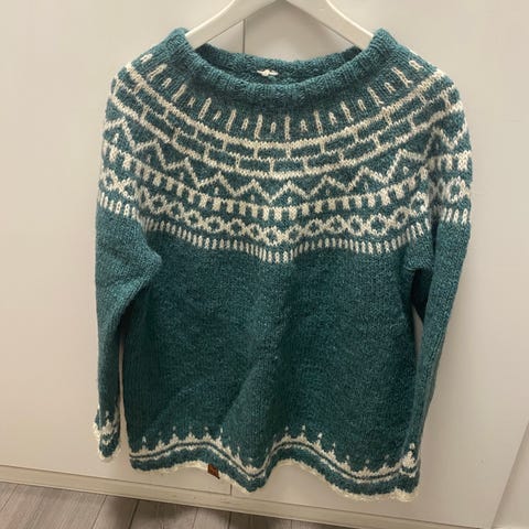 Käyttämätön käsinkudottu islantilaisneule. Koko: L