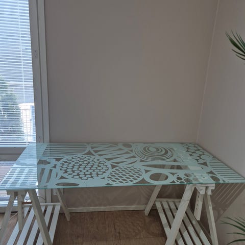 Reilu vuosi sitten Vepsäläiseltä ostettu lasipöytä. Hyvässä kunnossa. Myydään pois tilanpuutteen vuoksi.