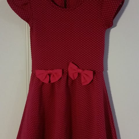 Myynnissä punainen vakosamettinen hihaton mekko, koko 100. Takana yläselässä vetoketju, toimii hyvin. Tästä vaikkapa joulumekko!🙂 Voin myös lähettää.